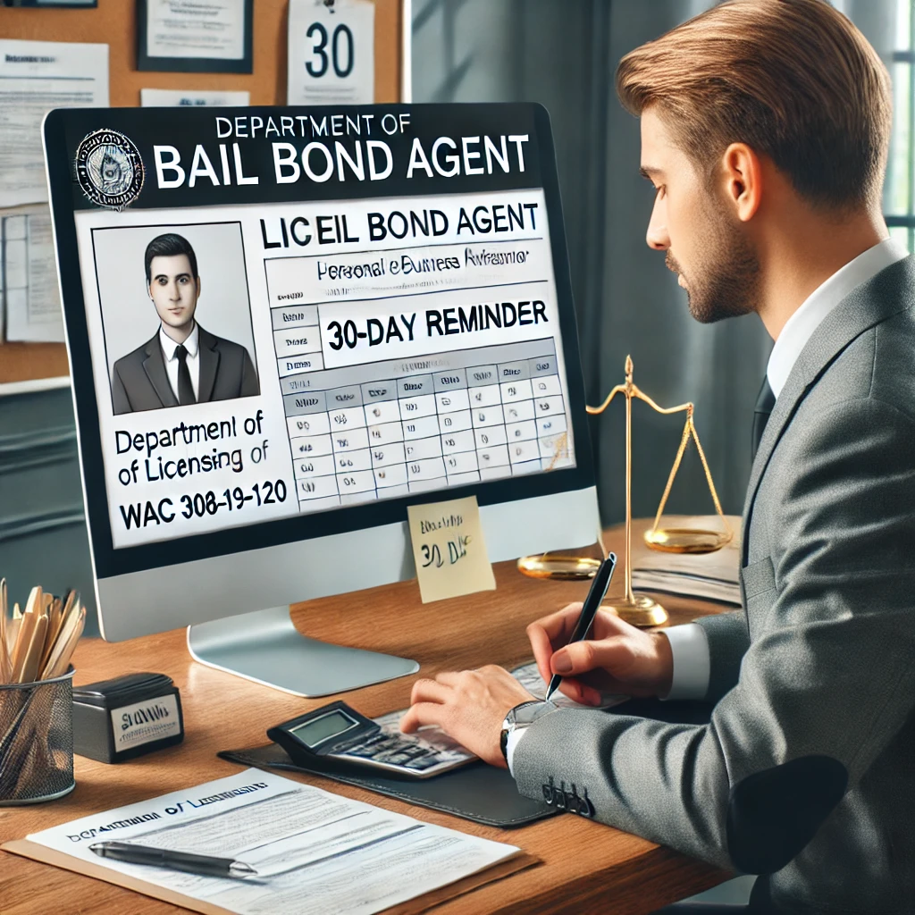 WAC 308-19-120 specifies that bail bond agents must notify the Department of any changes within 30 days. Failure to meet this deadline may result in penalties or disciplinary action. This timeline is critical for ensuring that the Department’s records are kept up to date, and it helps protect clients who need accurate contact information for their bail bond agent.