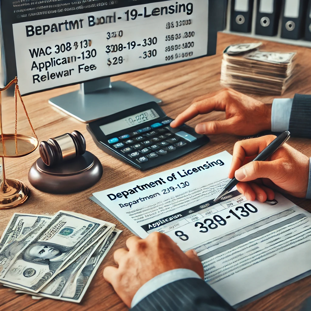 For a full review of all fees associated with WAC 308-19-130, you can access the regulation on the Washington State Legislature website here.