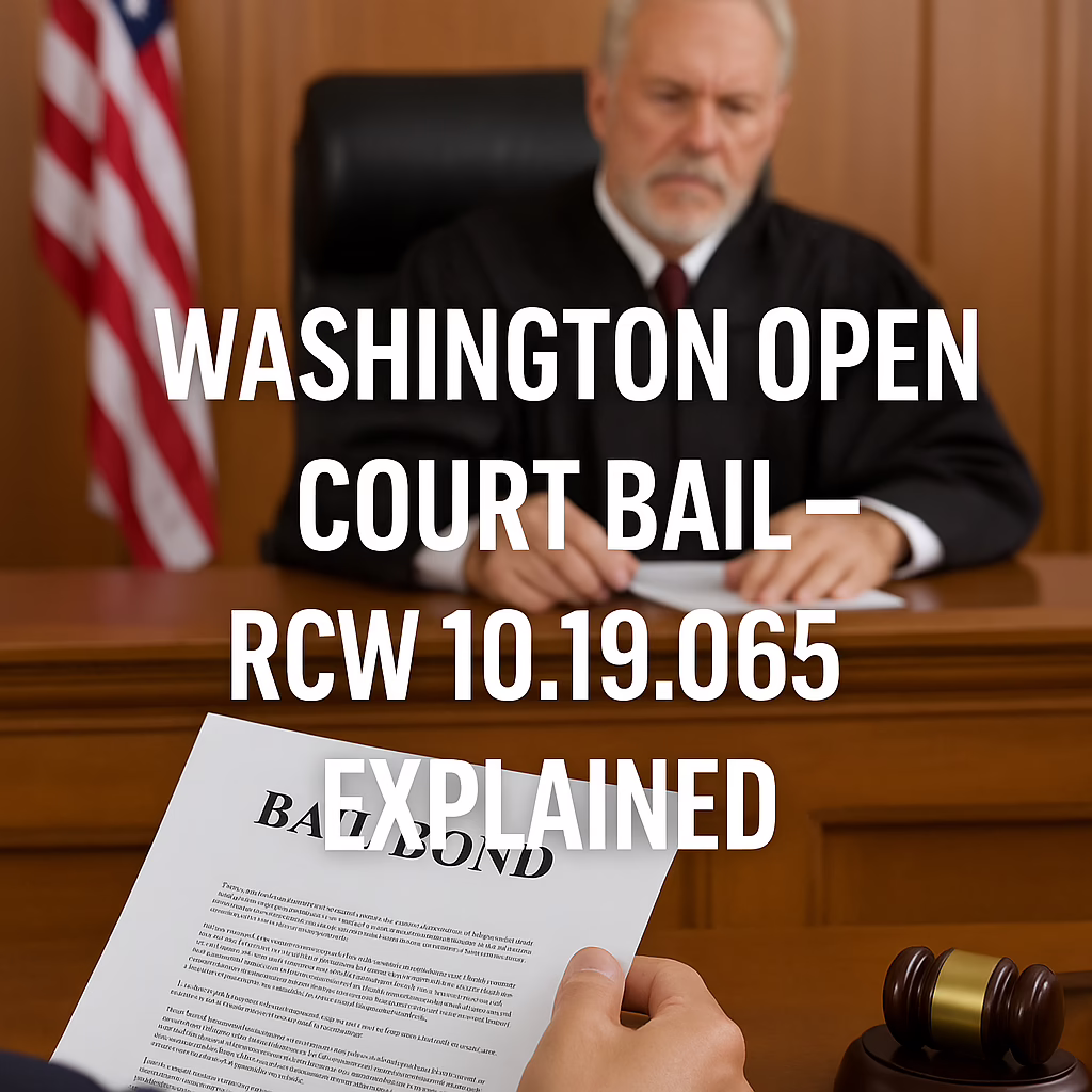 Under Washington open court bail law (RCW 10.19.065), a defendant or surety may present a bail bond in open court during criminal proceedings rather than waiting for paperwork to be processed outside the courtroom. This statutory provision helps streamline bail processes for those involved in criminal cases and ensures that critical bail decisions aren’t delayed unnecessarily.